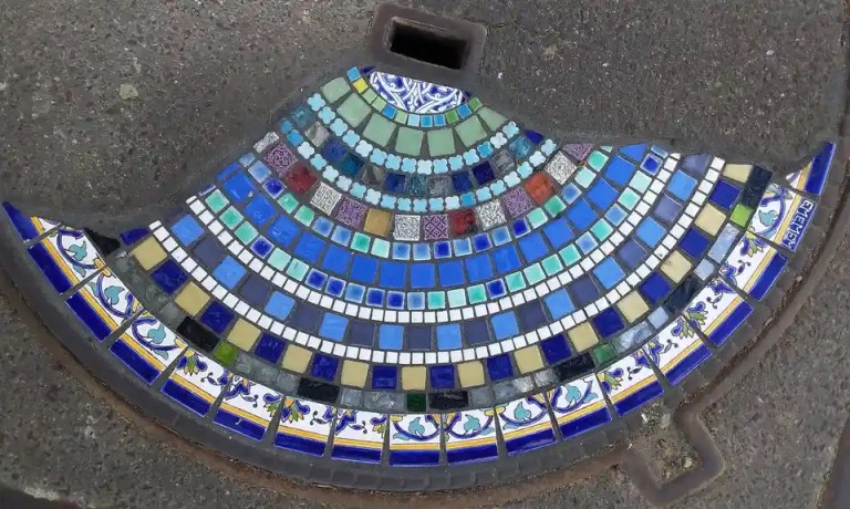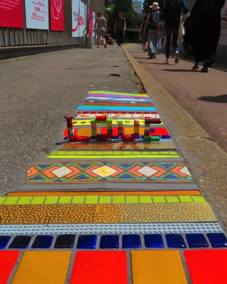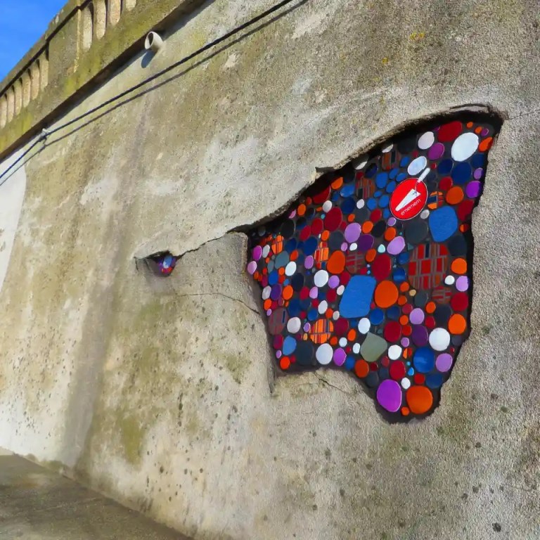 Anonymous artist Em Emem studs mundane, scarred streets with jewel-bright tiles
